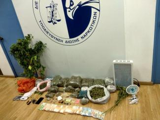 Μετά από έρευνα στην οικία του, καθώς και σε διαμέρισμα που χρησιμοποιούσε αποκλειστικά ως χώρο αποθήκευσης ναρκωτικών και καλλιέργειας δενδρυλλίων κάνναβης εσωτερικού χώρου, βρέθηκαν συνολικά και κατασχέθηκαν: