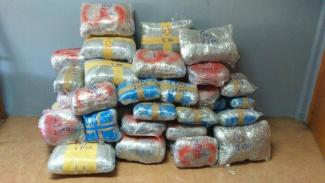 Κατά τη διάρκεια του ελέγχου, βρέθηκαν και κατασχέθηκαν στο χώρο των αποσκευών και της καμπίνας των επιβατών, (56) δέματα με ακατέργαστη κάνναβη, συνολικού βάρους (91) κιλών και (200) γραμμαρίων.