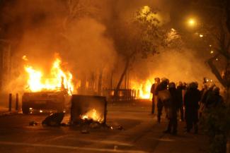 Συνεχίζεται η ένταση μεταξύ αντιεξουσιαστών και αστυνομικών δυνάμεων, με τους άνδρες των ΜΑΤ να βρίσκονται στη Στουρνάρη