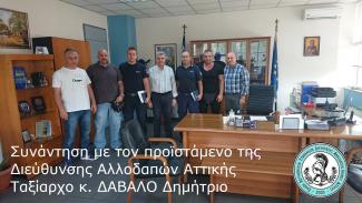 Στο πλαίσιο αυτό η Ένωση μας είχε το προηγούμενο διάστημα συνάντηση με τον Διευθυντή της Διεύθυνσης Αλλοδαπών ταξίαρχο κο Δάβαλο Δημήτριο έτσι ώστε να τον ενημερώσει για ζητήματα που απασχολούν το αστυνομικό προσωπικό –μέλη μας και να καταθέσει τις αιτιάσεις τους προβληματισμούς και τις προτάσεις της . Η συνάντηση πραγματοποιήθηκε σε κλίμα συνεργασίας, συναίνεσης καθώς και αλληλοκατανόησης για τα προβλήματα που υπάρχουν στην Διεύθυνση μας.