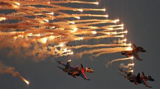 Το σμήνος επιδείξεων της ρωσικής αεροπορίας έκανε πτήσεις σε εκδήλωση που είχε να κάνει με αποκαλυπτήρια πεσόντων αεροπόρων!