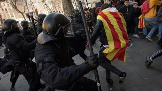Κοντά στον σιδηροδρομικό σταθμό Plaza Catalonia στο κέντρο της Βαρκελώνης, οι δυνάμεις ασφαλείας έκαναν χρήση των γκλοπ τους εναντίον μιας μεγάλης ομάδας, στην πλειονότητά τους νεαρών διαδηλωτών, αφού ορισμένοι εξ αυτών πέταξαν πέτρες εναντίον τους.