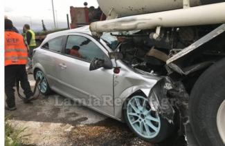 Το ατύχημα σημειώθηκε στο 149ο χλμ (ύψος Λιβανατών) στο ρεύμα προς Λαμία, όταν ΙΧΕ στο οποίο επέβαιναν δύο άτομα «καρφώθηκε» κάτω από άγνωστες συνθήκες, πίσω από το βαρύ όχημα.