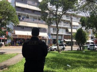 Στη συνέχεια κατέβηκε στο δρόμο και μαζί με τη γυναίκα του, μπήκε σε όχημα της Αστυνομίας για να οδηγηθεί στο αστυνομικό μέγαρο.
