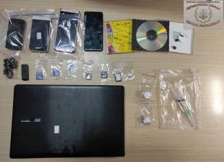 - μία χάρτινη συσκευασία με ναρκωτική ουσία (βραχάκι), πιθανόν ηρωίνη, μικτού βάρους 0,49 γρ.