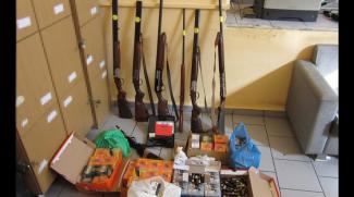 Κατά την διάρκεια της αιφνιδιαστικής έρευνας, διαπιστώθηκε ότι ο ύποπτος καλλιεργούσε μέσα σε γλάστρα ένα δενδρύλλιο κάνναβης ύψους 1,36 μέτρου και είχε στην κατοχή του ακατέργαστη κάνναβη βάρους 218,5 γραμμαρίων. Όμως, στο σπίτι βρέθηκαν ακόμη επτά κυνηγετικά όπλα, ένα πιστόλι κρότου, 2.379 κυνηγετικά φυσίγγια, επτά αβολίδωτα φυσίγγια πυροβόλου όπλου των 9 mm τα οποία κατασχέθηκαν.