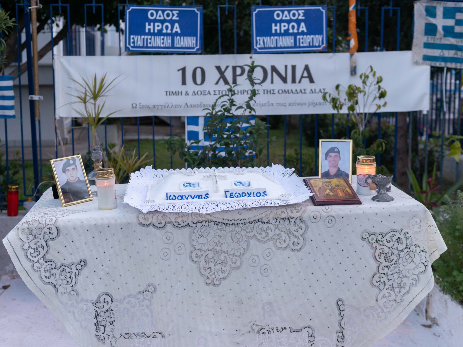 Ο Υπουργός Προστασίας Τάκης Θεοδωρικάκος έδωσε το παρόν στο ετήσιο μνημόσυνο των δυο ανδρών της ομάδας ΔΙ.ΑΣ που έπεσαν ηρωικά εν ώρα καθήκοντος πριν από 10 χρόνια από τις σφαίρες αδίστακτων δολοφόνων στη συμβολή των οδών Περικλέους και Παντελή Νικολαΐδη στον Άγιο Ιωάννη του Ρέντη.