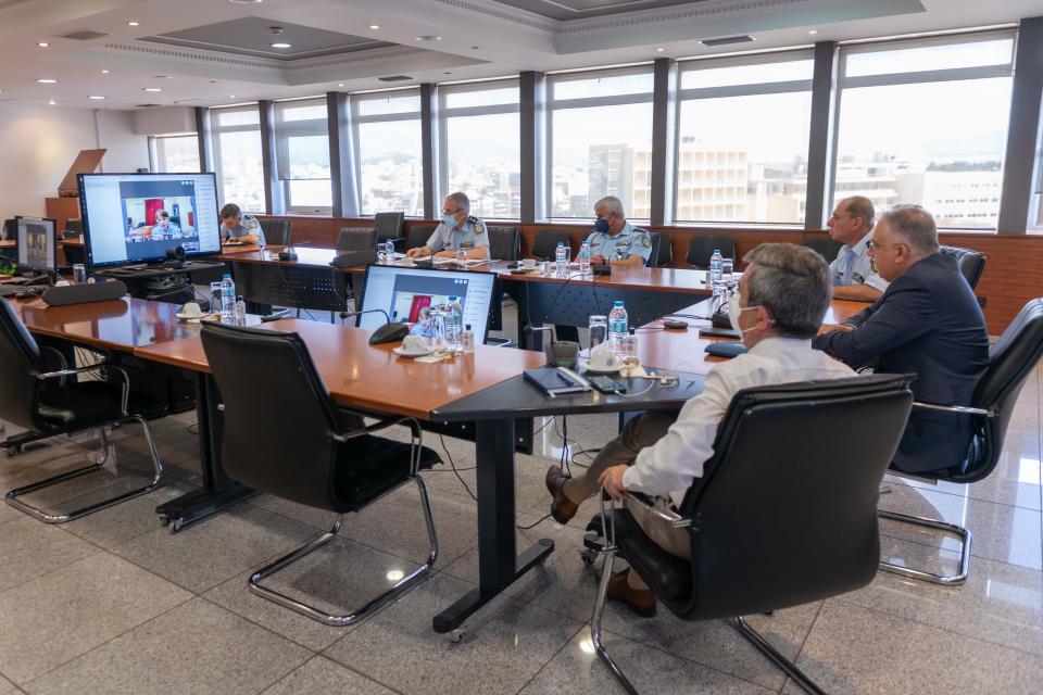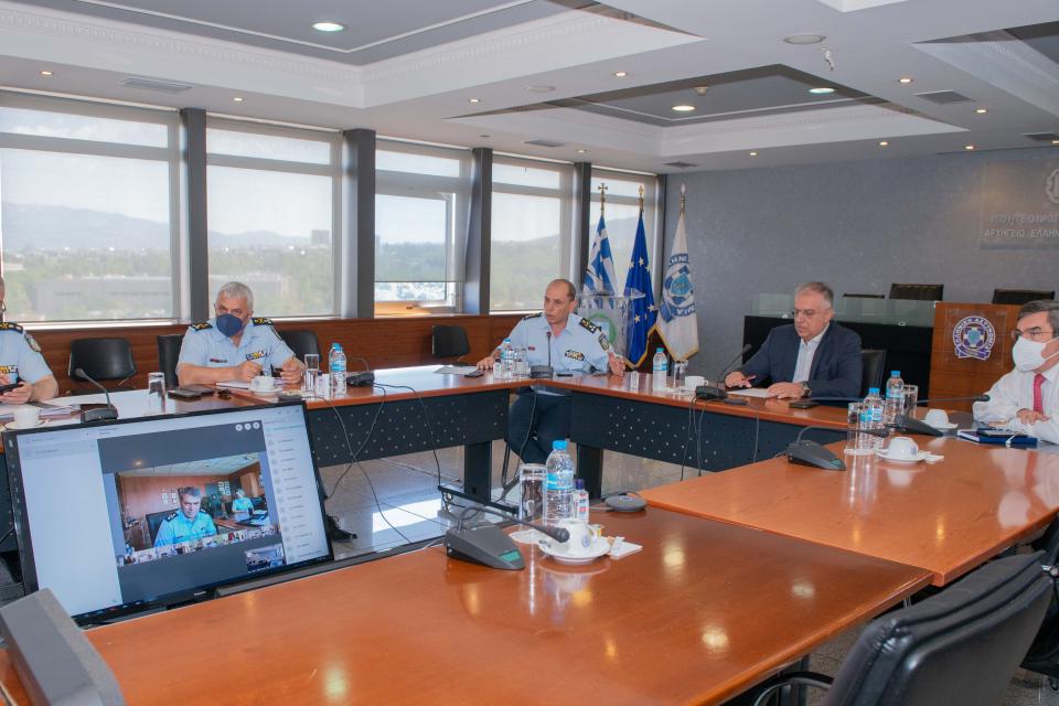 Ευρεία σύσκεψη μέσω τηλεδιάσκεψης υπό τον Υπουργό Προστασίας του Πολίτη Τάκη Θεοδωρικάκο πραγματοποιήθηκε σήμερα, με τη συμμετοχή του Υφυπουργού Λευτέρη Οικονόμου, του Αρχηγού της Ελληνικής Αστυνομίας, Αντιστράτηγου Κωνσταντίνου Σκούμα, του Γενικού Επιθεωρητή Αστυνομίας Νοτίου Ελλάδος, Αντιστράτηγου Γεώργιου Κανέλλου, του Προϊσταμένου Κλάδου Αλλοδαπών και Προστασίας Συνόρων του Αρχηγείου Ελληνικής Αστυνομίας, Υποστράτηγου Δημήτρη Μάλλιου και 21 Αστυνομικών Διευθυντών. Στην τηλεδιάσκεψη συζητήθηκε η αποτελεσματικότητα των μέτρων ασφαλείας στα αεροδρόμια και τις πύλες εισόδου της χώρας.