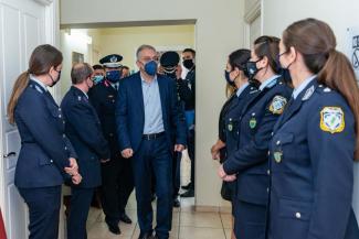 Στην συνέχεια, ο κ. Θεοδωρικάκος μετέβη στο Αστυνομικό Τμήμα Αλίμου όπου εγκαινίασε το Γραφείο Ενδοοικογενειακής Βίας. Πρόκειται για ένα από τα έξι γραφεία που έχουν ξεκινήσει τη λειτουργία τους στην Αττική και τη Θεσσαλονίκη και ο εξοπλισμός των γραφείων είναι δωρεά της εταιρείας «Παπαστράτος».