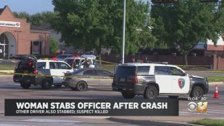 Σύμφωνα με το CBS News, ο αστυνομικός - του οποίου το όνομα δεν έχει κυκλοφορήσει - υπέστη τραυματισμούς από ένα μαχαίρι που κρατούσε η γυναίκα, όταν προσπαθούσε να την βοηθήσει να βγει από το όχημα της που είχε συντριβεί.