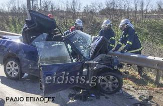 Από το αυτοκίνητο αυτό ανασύρθηκε νεκρός ο οδηγός και σοβαρά τραυματισμένη η συνοδηγός του, που μεταφέρθηκε στο νοσοκομείο αλλά κατέληξε.