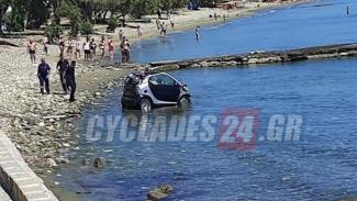 Ένα smart να… βουτάει μέσα στη θάλασσα είχαν οι λουόμενοι στην παραλία του Αγίου Φωκά στην Τήνο.