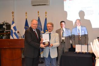 Κι εμείς σας απονέμουμε τον Έπαινο Τιμής και Αξίας και τον Θηρεό του Μουσείου μας ως ένα διαρκές ενθύμιο της αποψινής ιστορικής σύζευψης με τους βετεράνους μαχητές της έννομης τάξης της πατρίδας μας. Σας εύχομαι πλήρη επιτυχία στον παρόν συνέδριό σας. Ευχαριστώ πολύ!».