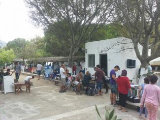 "Καταγραφή και ταυτοποίηση 59 Σύρων στα Κατάπολα της Αμοργού. Οι συνθήκες τόσο των προσφύγων όσο και των δικών μας (των αστυνομικών) ίσα ίσα υποφερτές. Οι σκηνές δεν είναι αδιάβροχες και η δική μας δουλειά γίνεται στο ύπαιθρο. Το meteo.gr δίνει καταιγίδα για το βράδυ...
