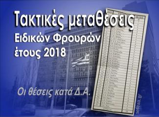 Παραθέτουμε τον πίνακα θέσεων ανά Δ.Α. που αφορά στις τακτικές μεταθέσεις Ειδικών Φρουρών, έτους 2018 ως ακολούθως: