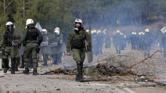 Μετά από 3 ώρες πορείας όταν εισήλθαμε στο στρατόπεδο οι στρατιωτικοί μας αντιμετώπισαν σαν να είμαστε εχθροί, μιλώντας άσχημα και απαξιωτικά στους αξιωματικούς της Δ.Α.Ε.Α. Όταν έσπασαν την πόρτα οι συγκεντρωμένοι οι στρατιωτικοί πάλι εμάς κατηγορούσαν ότι τους προκαλέσαμε. Έξω από το στρατόπεδο συγκεντρώθηκαν περί τα 1500 άτομα. Μας έριχναν πέτρες μολότοφ φωτοβολίδες σε ευθεία γραμμή, με καραμπίνες ακόμη και δυναμίτες ψαρέματος. Εμείς όλοι λειτουργήσαμε άψογα αποκρούοντας τις δολοφονικές επιθέσεις που δεχθήκαμε, εμποδίζοντας τα άτομα να εισέλθουν γιατί είμαστε επαγγελματίες με υψηλό αίσθημα ευθύνης.