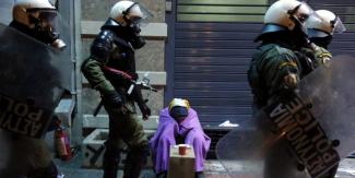 Τον γύρο του διαδικτύου κάνει μια φωτογραφία που παρουσιάζει έναν άστεγο στο κέντρο της Αθήνας την ώρα που περνούν από μπροστά του οι άντρες των ΜΑΤ.