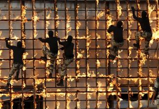 Στη Συρία κρέμονται πάνω από φλεγόμενα εμπόδια.