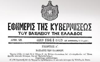 1864: Δημοσιεύεται το νέο Σύνταγμα της Ελλάδας. Καταργείται η Συνταγματική Μοναρχία και καθιερώνεται η Βασιλευόμενη Δημοκρατία.