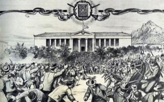1903: Δύο χρόνια μετά τα «Ευαγγελικά» ξεσπούν εκ νέου ταραχές, με αφορμή αυτή τη φορά την παράσταση του έργου «Ορέστεια» του Αισχύλου από το Βασιλικό Θέατρο, μεταφρασμένο στη δημοτική από τον καθηγητή Γ. Σωτηριάδη. Το αποτέλεσμα των συγκρούσεων είναι τρεις νεκροί και επτά τραυματίες.