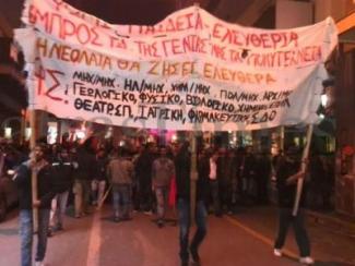 19:48 (zougla.gr) Βροχή από μολότωφ και πέτρες εκτόξευσε, πριν από λίγα λεπτά, ομάδα διαδηλωτών όταν η πορεία έφτασε έξω από το Δικαστικό Μέγαρο της Πάτρας, στη συμβολή των οδών Γούναρη και Κορίνθου.