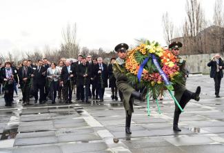 Τους ηγέτες υποδέχθηκε ο πρόεδρος της Αρμενίας Σερζ Σαργκισιάν, ο οποίος στην ομιλία του τόνισε ότι η γενοκτονία που συντελέστηκε το 1915 είναι ένα από τα πλέον ειδεχθή εγκλήματα που διεπράχθησαν τον 20 αιώνα, και για αυτό πρέπει να αναγνωριστεί παγκοσμίως.