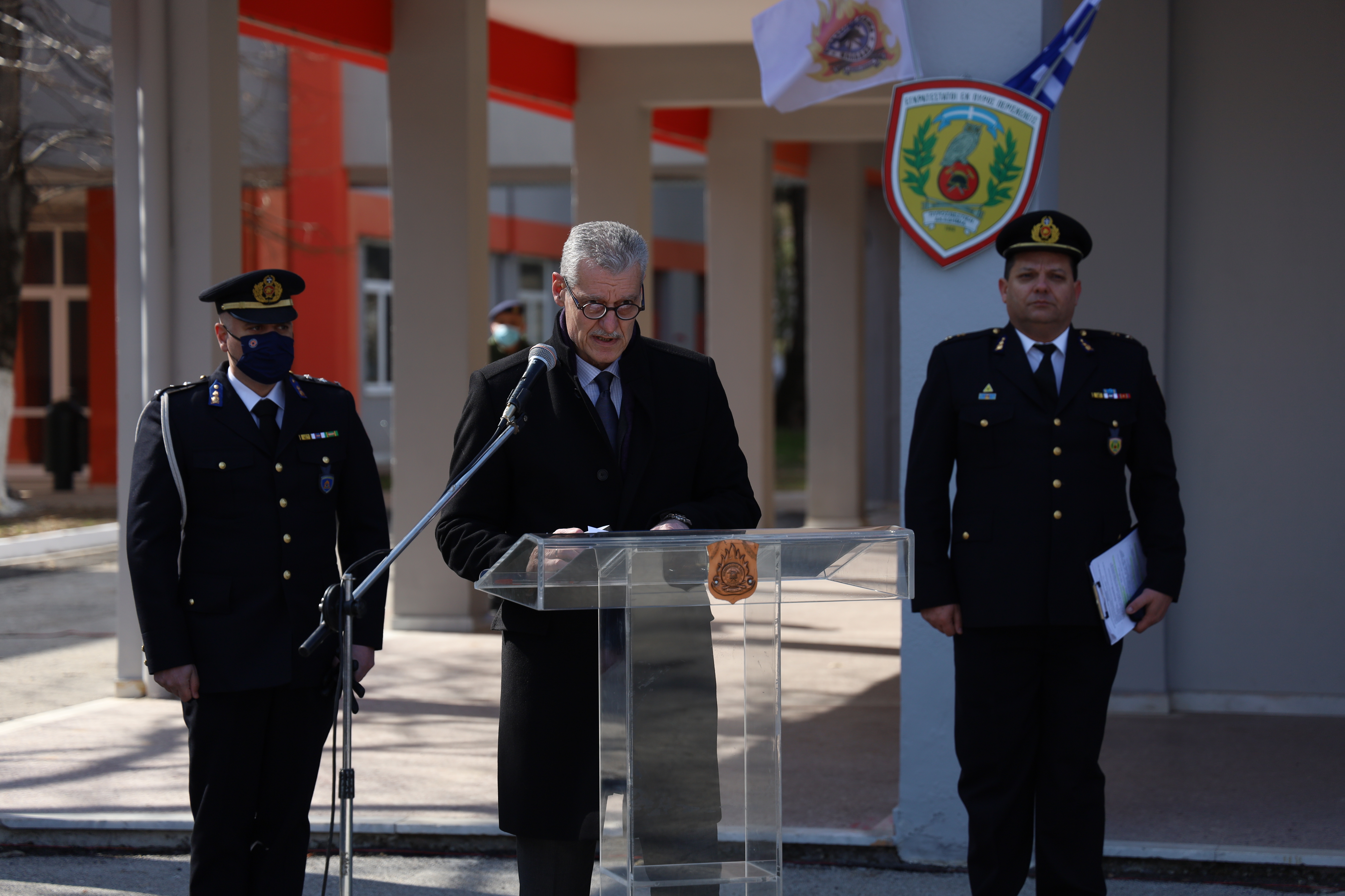 Στη συνέχεια, ο Υφυπουργός Κλιματικής Κρίσης και Πολιτικής Προστασίας Ευάγγελος Τουρνάς, στο σύντομο χαιρετισμό του, μεταξύ άλλων, υπογράμμισε: «Νέοι Πυροσβέστες και Πυροσβέστριες, είμαι ιδιαίτερα χαρούμενος που βρίσκομαι σήμερα εδώ, στην τελετή αποφοίτησής σας από την Σχολή Πυροσβεστών. Οι πέντε (5) πρώτοι από την Σειρά σας θα μπείτε επάξια στη Σχολή Αξιωματικών, οι είκοσι (20) από εσάς, αφού ολοκληρώσατε την βασική εκπαίδευση, θα ενταχθείτε και θα ενισχύσετε άμεσα τις επιχειρησιακές δομές του Πυροσβεστικού Σώματος και οι υπόλοιποι, με επιλογή σας, θα συνεχίσετε την εκπαίδευσή σας στον δεύτερο κύκλο σπουδών. Για όλους εσάς, η σημερινή ημέρα είναι πολύ σημαντική, γιατί με τον όρκο που δώσατε, ενταχθήκατε και τυπικά στις τάξεις του Πυροσβεστικού Σώματος. Όμως και για όλους εμάς, που βρεθήκαμε εδώ σε αυτή την τελετή, είναι επίσης μία ιδιαίτερη ημέρα, αφού γίναμε μάρτυρες του όρκου που δώσατε για πίστη στην πατρίδα, υποταγή στο Σύνταγμα και τους Νόμους του Κράτους και υπακοή εις τους ανωτέρους σας. Ένας όρκος τιμής, ενσυνείδητης αφοσίωσης στο καθήκον και εθελοντικής προσφοράς στο κοινωνικό σύνολο και στην Πατρίδα. Σήμερα, λοιπόν, εντάσσεστε σε ένα Σώμα με μεγάλη και λαμπρή προσφορά για την προστασία της ζωής και της περιουσίας των πολιτών, του φυσικού περιβάλλοντος και ιδίως του δασικού πλούτου της Χώρας και είναι ένα Σώμα που αποτελεί τον κύριο επιχειρησιακό βραχίονα της Γενικής Γραμματείας Πολιτικής Προστασίας, σε μία εποχή στην οποία, η κλιματική αλλαγή διαμορφώνει μια νέα κανονικότητα, όπου κυριαρχούν τα ακραία καιρικά φαινόμενα και οι φυσικές καταστροφές όλες τις εποχές του χρόνου. Σε αυτό το περιβάλλον του σεισμού, της πλημμύρας και της φωτιάς καλείστε να επιχειρήσετε με αμεσότητα, πληρότητα, αποτελεσματικότητα και πάνω απ’ όλα με ασφάλεια. Για τον σκοπό αυτό εσείς που θα συνεχίσετε την φοίτησή σας στον δεύτερο κύκλο σπουδών, φροντίστε να αξιοποιήσετε αυτή την δυνατότητα. Με αυτό τον τρόπο πιστεύω ακράδαντα ότι θα αποκτήσετε επιπλέον εξειδίκευση και θα βοηθήσετε περαιτέρω στην υλοποίηση της δύσκολης αποστολής του Σώματος, σε μία εποχή που οι πολίτες περιμένουν πολλά από εσάς και οι απαιτήσεις και οι προκλήσεις είναι ακόμη μεγαλύτερες. Για τους υπόλοιπους που εντάσσεστε άμεσα στην επιχειρησιακή δράση, ως στελέχη ενός Σώματος που είναι και πρέπει να παραμείνει καταξιωμένο στην συνείδηση του Ελληνικού λαού, αξιοποιήστε στο έπακρο τις γνώσεις που αποκτήσατε κατά την φοίτησή σας στη Σχολή, εκμεταλλευτείτε την εμπειρία των παλαιοτέρων συναδέλφων σας, τηρήστε τους κανόνες ασφαλείας και ενεργήστε την ώρα της φωτιάς με ψυχρή λογική και επαγγελματισμό. Να θυμάστε ότι ο καλός πυροσβέστης την ώρα της μάχης είναι ο γερός πυροσβέστης και συνάμα ο ψύχραιμος, ο επαγγελματίας, ο καταρτισμένος, ο μεθοδικός και ο πειθαρχημένος. Οι ευθύνες που θα αναλάβετε σε λίγο είναι μεγάλες και το έργο που καλείστε να επιτελέσετε είναι ιδιαίτερα απαιτητικό, με αυξημένο βαθμό επικινδυνότητας, σκληρό και δύσκολο, αλλά ταυτόχρονα συναρπαστικό και με μεγάλη κοινωνική προσφορά και αποδοχή. Οπλιστείτε με πνευματική και ψυχική δύναμη, καλλιεργήστε μέσα σας το αίσθημα του ανθρωπισμού, την μετριοπάθεια, τη σεμνότητα, την εντιμότητα, την ακεραιότητα του χαρακτήρα, τη σοβαρότητα, την αξιοπρέπεια, αλλά και την συναδελφική αλληλεγγύη, γιατί μόνο έτσι θα αποκτή