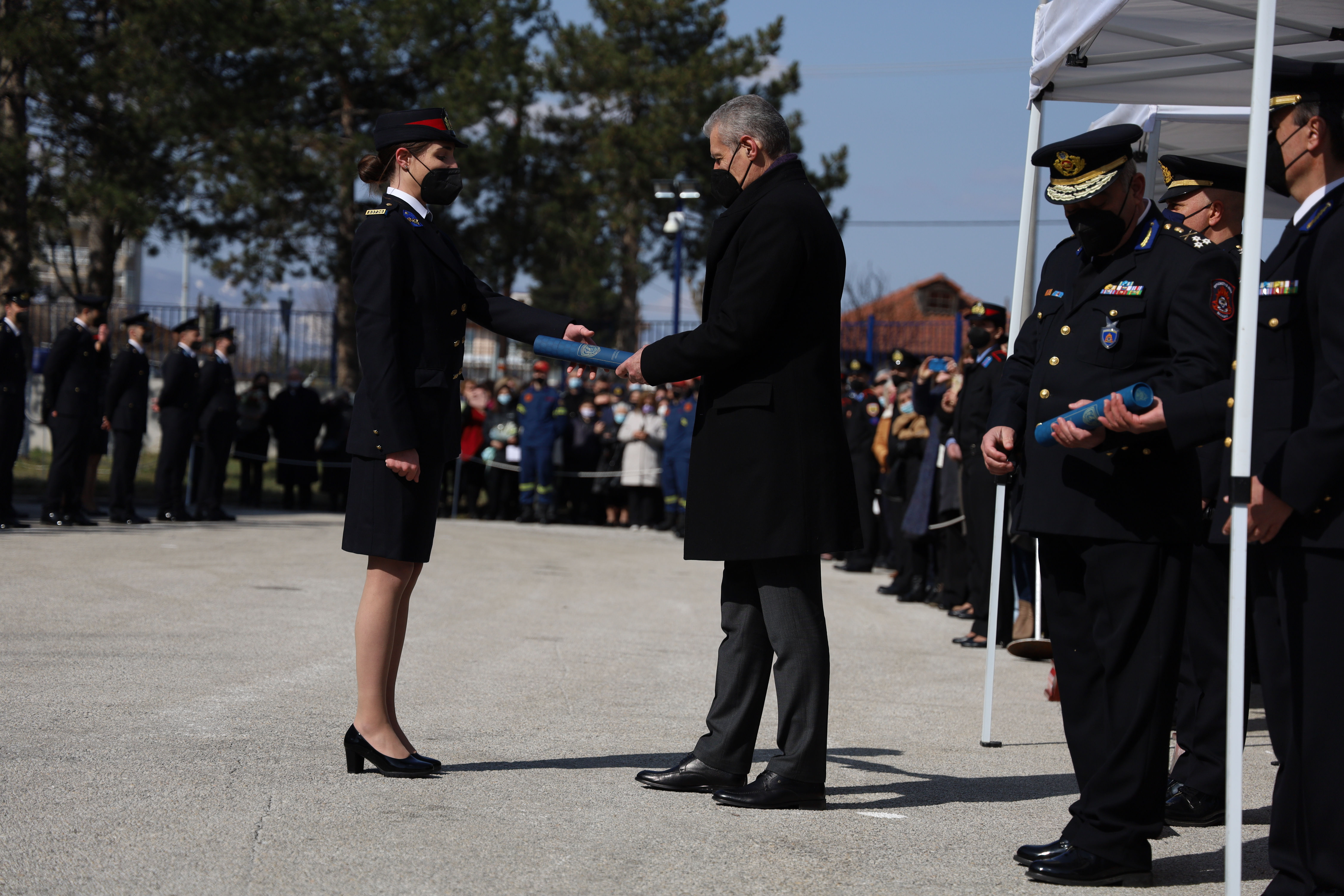 Παρουσία του Υφυπουργού Κλιματικής Κρίσης και Πολιτικής Προστασίας Ευάγγελου Τουρνά και του Αρχηγού του Πυροσβεστικού Σώματος Αντιστράτηγου Αλέξιου Ράπανου πραγματοποιήθηκε σήμερα, Δευτέρα, 21 Μαρτίου 2022, η τελετή αποφοίτησης των εκατόν δύο (102) Δοκίμων Πυροσβεστών της 87ης Εκπαιδευτικής Σειράς, στις εγκαταστάσεις της Σχολής Πυροσβεστών στο παράρτημα Πτολεμαΐδας.
