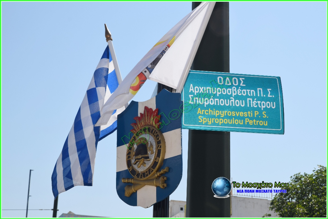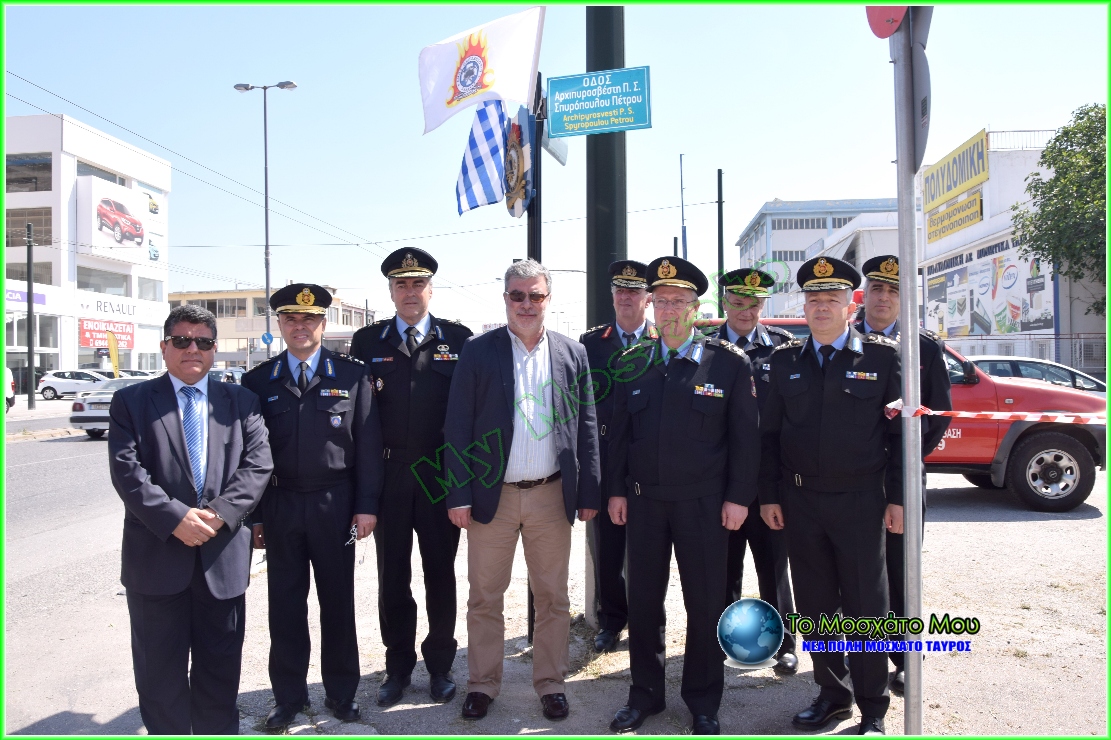 Σε μια σεμνή τελετή, ο Δήμος Μοσχάτου – Ταύρου και η Πυροσβεστική Υπηρεσία Πειραιά τίμησαν τη μνήμη του Αρχιπυροσβέστη Σπυρόπουλου Πέτρου, το πρωί της Τρίτης, 24 Απριλίου 2018. Η τελετή έγινε στη συμβολή των οδών Αρχιπυροσβέστη Σπυρόπουλου Πέτρου και Πειραιώς στο Μοσχάτο.