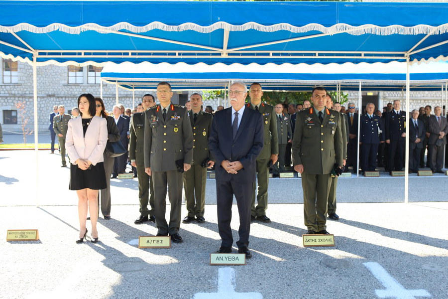 O Αναπληρωτής Υπουργός Εθνικής Άμυνας Δημήτρης Βίτσας, συνοδευόμενος από τον Αρχηγό ΓΕΣ Αντιστράτηγο Αλκιβιάδη Στεφανή και την Ειδική Γραμματέα του ΥΠΕΘΑ Καλλιόπη Παπαλεωνίδα, παρέστησαν, σήμερα Παρασκευή 20 Οκτωβρίου 2017, στην τελετή ορκωμοσίας των πρωτοετών σπουδαστών της Σχολής Μονίμων Υπαξιωματικών (ΣΜΥ) στα Τρίκαλα.