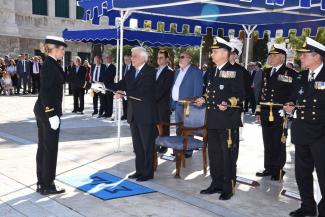 Ο όρκος που δώσατε σήμερα στα σύμβολα της Πατρίδας και της Πίστεως ενώπιον της Αυτού Εξοχότητας του Προέδρου της Ελληνικής Δημοκρατίας, της Πολιτικής και Στρατιωτικής Ηγεσίας, των γονέων και συγγενών σας, αποτελεί σύμβολο τιμής και ισχυρή δέσμευσή προς την Πατρίδα, την οποία καλείστε να υπηρετήσετε ως Αξιωματικοί του Λιμενικού Σώματος.