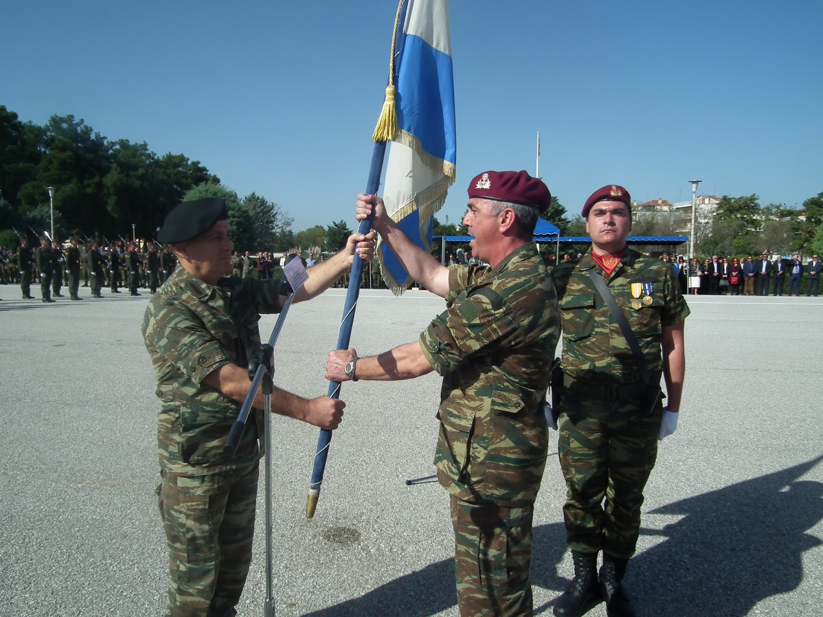 Ο Υπουργός Εθνικής Άμυνας Πάνος Καμμένος, συνοδευόμενος από τον Αρχηγό ΓΕΕΘΑ Ναύαρχο Ευάγγελο Αποστολάκη ΠΝ και τον Αρχηγό ΓΕΣ Αντιστράτηγο Βασίλειο Τελλίδη, επισκέφθηκε τη Λάρισα, όπου παρέστη στην Τελετή Παράδοσης Πολεμικών Σημαιών στις Ι ΜΠ - ΙΙ Μ / Κ ΜΠ - VIII M / Π TAΞ - Χ ΣΠ - 1ο - 2ο ΤΕΕΠ της 1ης Στρατιάς.