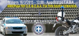 Την Τετάρτη 18/03/2015 και ώρα 13:00 στο Αμφιθέατρο της Γενικής Αστυνομικής Διεύθυνσης Αττικής με την παρουσία και ομιλία έγκριτων επιστημόνων συμβάλλουμε έμπρακτα στην προσπάθεια να περιοριστεί, το φαινόμενο πλέον, των συχνών τροχαίων ατυχημάτων, σε κάθε ένα από τα οποία ακολουθεί και μια προσωπική και οικογενειακή τραγωδία.