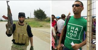 Σύμφωνα με τη Σίβυλλα ο δολοφόνος του ισλαμικού κράτους και διοικητής ομάδας αποκεφαλιστών, ο 30χρονος Laith Al Saleh, στην αριστερά φωτογραφία ποζάρει με το όπλο του κοντά στο Χαλέπι στη Συρία και στη δεξιά ενώ αναμένει να επιβιβαστεί σε πλοίο από την Κω (το Σάββατο).