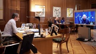 Στο πλαίσιο της τηλεδιάσκεψης τονίστηκε ακόμη η ανάγκη διατήρησης της ευρωπαϊκής ενότητας και η εξάντληση όλων των διπλωματικών μέσων και των διαύλων επικοινωνίας προκειμένου να αποφευχθεί η κλιμάκωση.