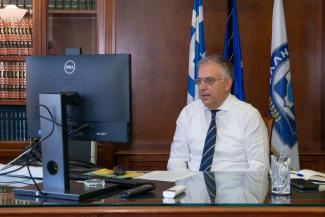 Ο Υπουργός Προστασίας του Πολίτη Παναγιώτης Θεοδωρικάκος πραγματοποίησε τηλεδιάσκεψη σήμερα το πρωί με φορείς της Θεσσαλονίκης ενόψει ΔΕΘ. Στη σύσκεψη συμμετείχαν ο υφυπουργός Εσωτερικών για θέματα Μακεδονίας Σταύρος Καλαφάτης, ο περιφερειάρχης Κεντρικής Μακεδονίας Απόστολος Τζιτζικώστας, ο Δήμαρχος Θεσσαλονίκης Κωνσταντίνος Ζέρβας, η αντιπεριφερειάρχης Βούλα Πατουλίδου και ο προέδρος του Εμπορικού Συλλόγου Θεσσαλονίκης Παντελής Φιλιππίδης.