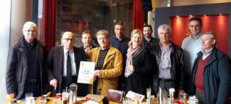 Εκπρόσωποι του Αστυνομικού Μουσείου Καρδίτσας κ.κ. Δημήτριος Καλλιαντζής και Ελένη Αντωνίου, της Ένωσης Αποστράτων Σωμάτων Ασφαλείας Ν. Καρδίτσας κ. Στέφανος Πούλιος, της τοπικής διοίκησης ΙΡΑ Καρδίτσας κ. Γεώργιος Ζαρχανής, συναντήθηκαν στις 3 Μαρτίου ε.ε. στο νεοανεγερθέν μνημείο πεσόντων Αστυνομικών, έναντι των παλαιών φυλακών Τρικάλων, με τους κ.κ. Κων/νο Θεοχάρη, Ιωάννη Φλόκα, Βασίλειο Δραγούτσο της τ.δ. ΙΡΑ Τρικάλων και τον κ. Ιωάννη Αναγνώστου, Πρόεδρο της Ένωσης Αστυνομικών Υπαλλήλων Τρικάλων και απέδωσαν την οφειλόμενη τιμή και ευγνωμοσύνη στους πεσόντες υπέρ του καθήκοντος Αστυνομικούς καταθέτοντας δάφνινο στεφάνι και τηρώντας ενός λεπτού σιγή.
