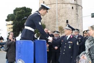 Πραγματοποιήθηκε σήμερα το πρωί στην πλατεία Λευκού Πύργου ειδική εκδήλωση προς τιμήν του ρυθμιστή τροχονόμου. Σκοπός της εκδήλωσης ήταν η επιβράβευση των τροχονόμων, ανδρών και γυναικών, για την πολύτιμη προσφορά τους, η οποία αναγνωρίζεται καθημερινά από τους οδηγούς και πεζούς, ενισχύοντας ταυτόχρονα και το αίσθημα ασφάλειας και ικανοποίησης του κοινού. Ο Γενικός Επιθεωρητής Αστυνομίας Βορείου Ελλάδος, Αντιστράτηγος Μιχαήλ Καραμαλάκης, με τον Γενικό Αστυνομικό Διευθυντή Θεσσαλονίκης, Υποστράτηγο Νικόλαο Μπαντουβάκη, αντάλλαξαν ευχές και προσέφεραν εθιμοτυπικά δώρα στον ρυθμιστή τροχονόμο της Διεύθυνσης Τροχαίας Θεσσαλονίκης.