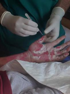 "Η φωτογραφία είναι το καμμένο χέρι του συναδέλφου που τραυματίστηκε στα επεισοδια στην Αθήνα. Πρίν λίγες μέρες ενας συνάδελφος στην θεσσαλονίκη πυροβολήθηκε και κυριολεκτικά απο τύχη είναι ζωντανός.