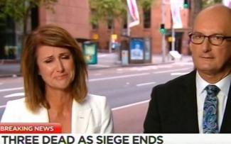 Η δημοσιογράφος Natalie Barr μεταδίδει live μαζί με έναν συνάδελφό της, ότι νεότερο υπάρχει για την ομηρεία στην πόλη τους, το Σίδνεϊ της Αυστραλίας.