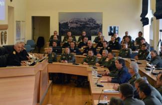 Ο Αρχηγός ΓΕΕΘΑ, κατά την ομιλία του, εστίασε στο ευρύτερο γεωπολιτικό περιβάλλον ασφαλείας, στο πολυδιάστατο έργο που επιτελούν οι Ένοπλες Δυνάμεις στο εσωτερικό τονίζοντας παράλληλα και την εξωστρέφεια που επιδεικνύουν στο διεθνές πεδίο, καθώς και στα μέτρα μέριμνας για το προσωπικό που έχουν υλοποιηθεί ή προωθούνται προς υλοποίηση.
