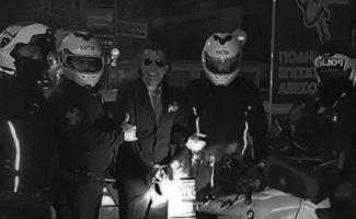Ο Ηλίας Ψινάκης αποφάσισε να βγάλει μια αναμνηστική φωτογραφία με τους αστυνομικούς που περιπολούσαν το κέντρο της Αθήνας, προσποιούμενος ότι έχει συλληφθεί για κάτι.