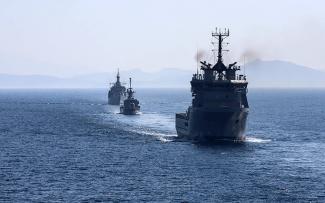 «Φανταστείτε ένα τείχος από πλοία που ξεκινάει από το βόρειο Αιγαίο και καταλήγει στο νότιο. Στον Έβρο έχουμε τον φράχτη που αυτό τον καιρό τελειοποιούμε ώστε να αποτραπεί οποιαδήποτε ενέργεια σαν αυτή των αρχών του έτους από τους γείτονες και στη θάλασσα έχουμε αυτό τον σχηματισμό που μοιάζει με φράγμα» μας εξηγεί ανώτατη πηγή του Υπουργείου Εθνικής Άμυνας με την οποία είχαμε επικοινωνία.