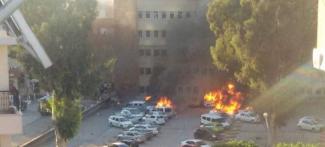 Τηλεοπτικά πλάνα δείχνουν ένα όχημα να φλέγεται, στο πάρκινγκ του κτιρίου, έξω από το γραφείο του τοπικού κυβερνήτη και πυκνός μαύρος καπνός να βγαίνει από αυτό, σύμφωνα με το CNN Τurk.