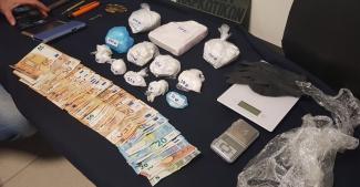 Κατά τη διάρκεια του ελέγχου βρέθηκαν και κατασχέθηκαν 49 γραμμάρια κοκαΐνης, το χρηματικό ποσό των 1.060 ευρώ και δύο κινητά τηλέφωνα.