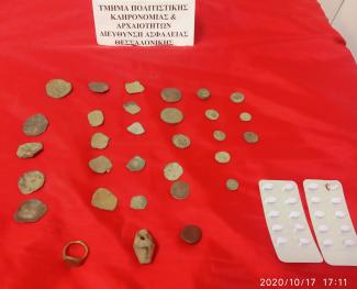 Από το χώρο ανασκαφής κατασχέθηκαν φακοί, γάντια, μπαταρίες, σακίδια, μάσκες προσώπου μιας χρήσης και εργαλεία πρόσφορα και βοηθητικά για την ολοκλήρωση της παράνομης ενέργειας.