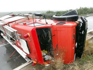 Κατά την προσπάθεια κατάσβεσης σε δύσβατο σημείο ένα πυροσβεστικό όχημα ανετράπη με αποτέλεσμα να τραυματιστεί ελαφρά ο οδηγός του οχήματος και πολύ ελαφρά (με αμυχές) πολίτης που βρισκόταν στο σημείο.