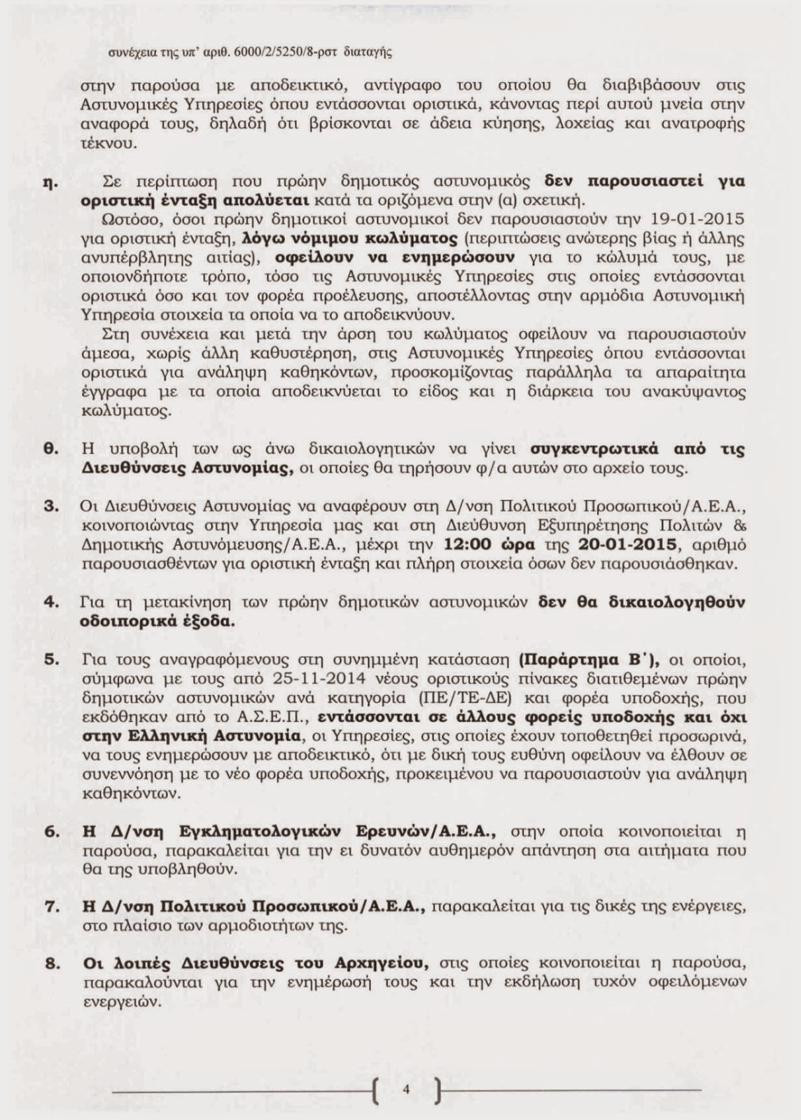 Το έγγραφο του Α.Ε.Α. για την ΟΡΙΣΤΙΚΗ ένταξη των 1542 π. Δ.Α. στην ΕΛ.ΑΣ. - Tη Δευτέρα 19 Ιανουαρίου οι υπογραφές "οριστικής ένταξης και ανάληψης καθηκόντων"