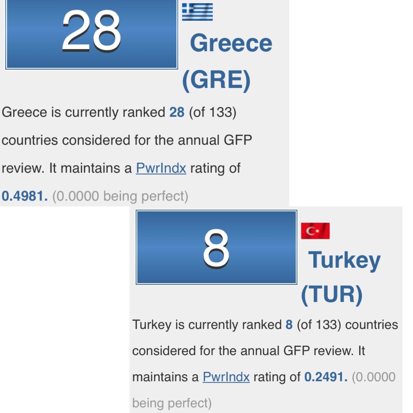 Είναι αποκαλυπτικό το κάτωθι γράφημα που παρατίθεται στον σύνδεσμο https://www.globalfirepower.com με το ερώτημα του φιλοσόφου Bertrand Russel "Ο πόλεμος δεν καθορίζει ποιος είναι σωστός - αλλά μόνο ποιος έχει απομείνει" (War does not determine who is right — only who is left.).
