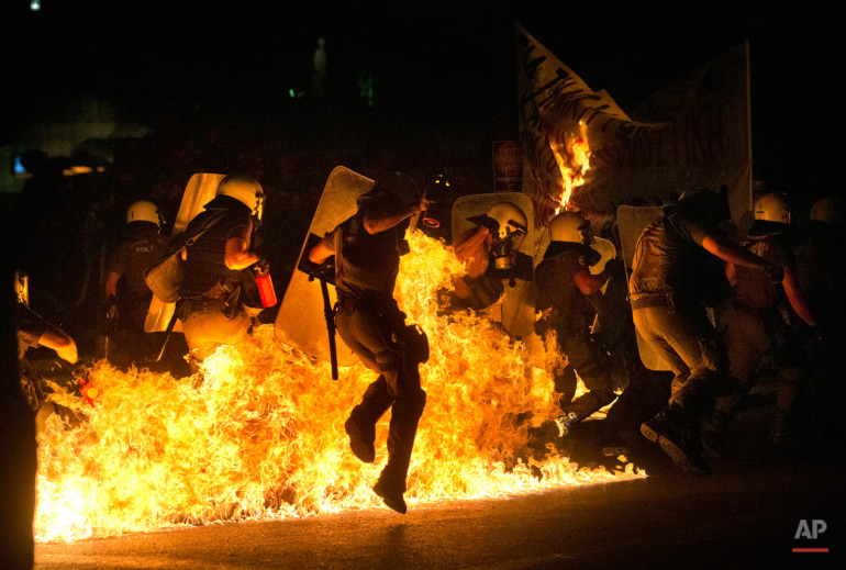 Το Associated Press συγκέντρωσε σε μια ανάρτηση τα φωτογραφικά καρέ των φωτορεπόρτερ του από την Ελλάδα που «φλέγεται» εδώ κι έναν μήνα από τον πυρετό του δημοψηφίσματος, την πολύχρονη λιτότητα, τις κλειστές τράπεζες και τα capital controls.